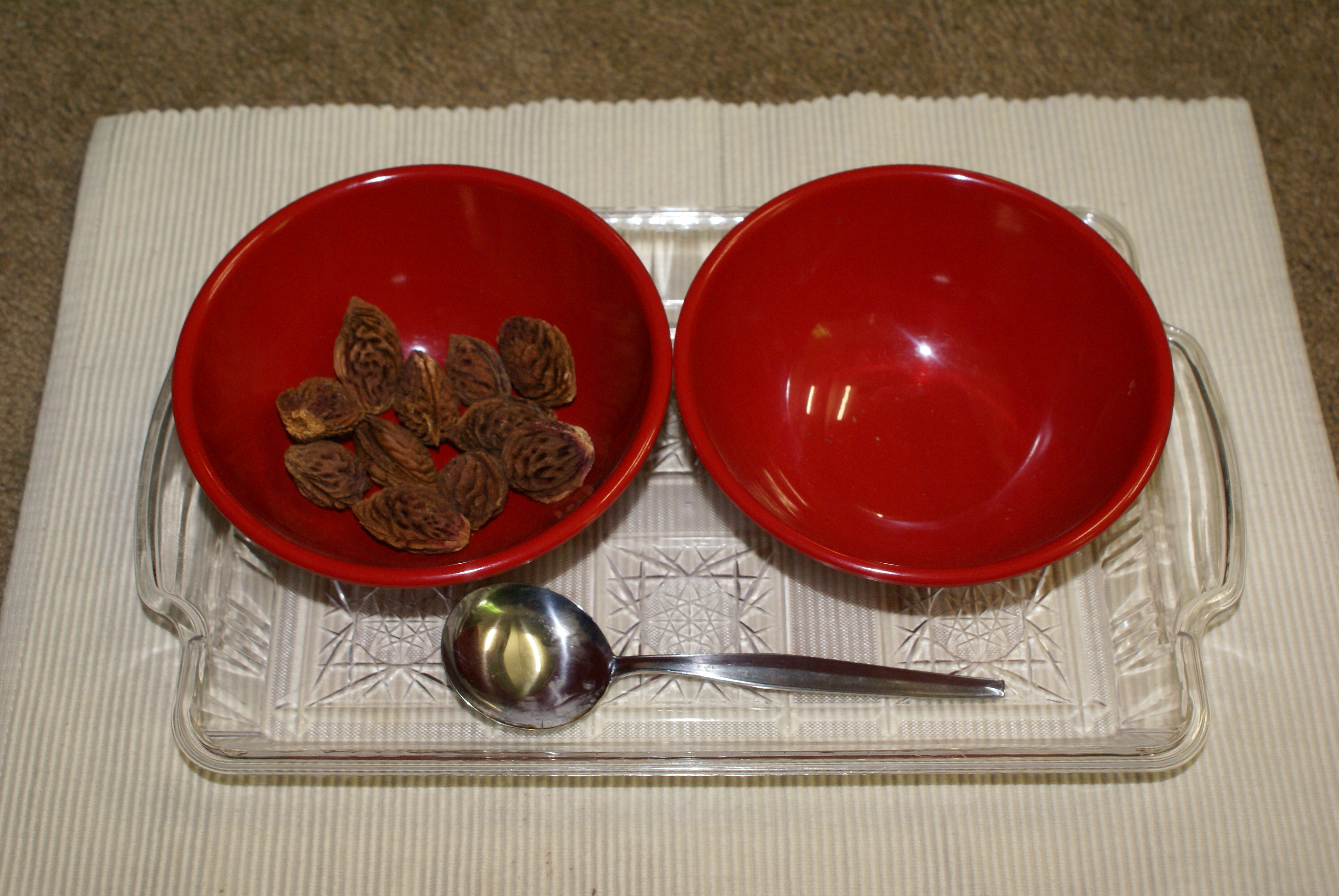 The tray is the way the child carries the activity from the shelf to the floor or the shelf to the table. Sometimes, depending on the activity, it defines the workspace for the child doing the activity (same with a mat) and other child know not to interfere with that child’s work unless invited.